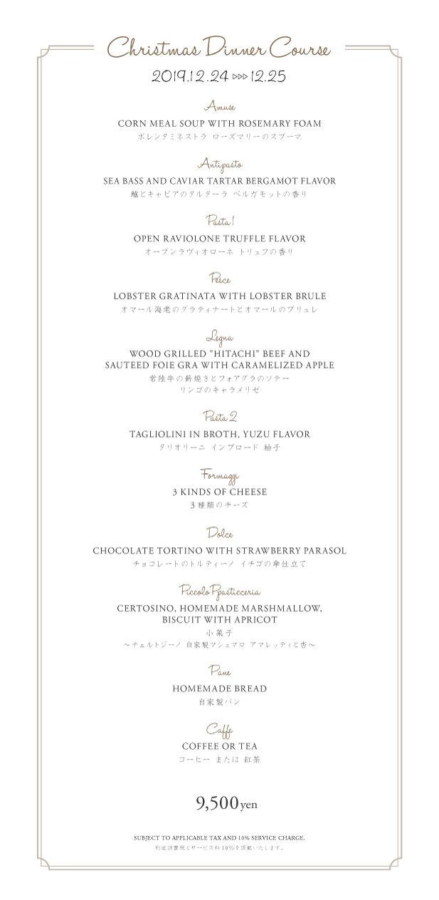 12月24日~25日の期間、「E'VOLTA」ではクリスマス限定コースをご用意しております。
