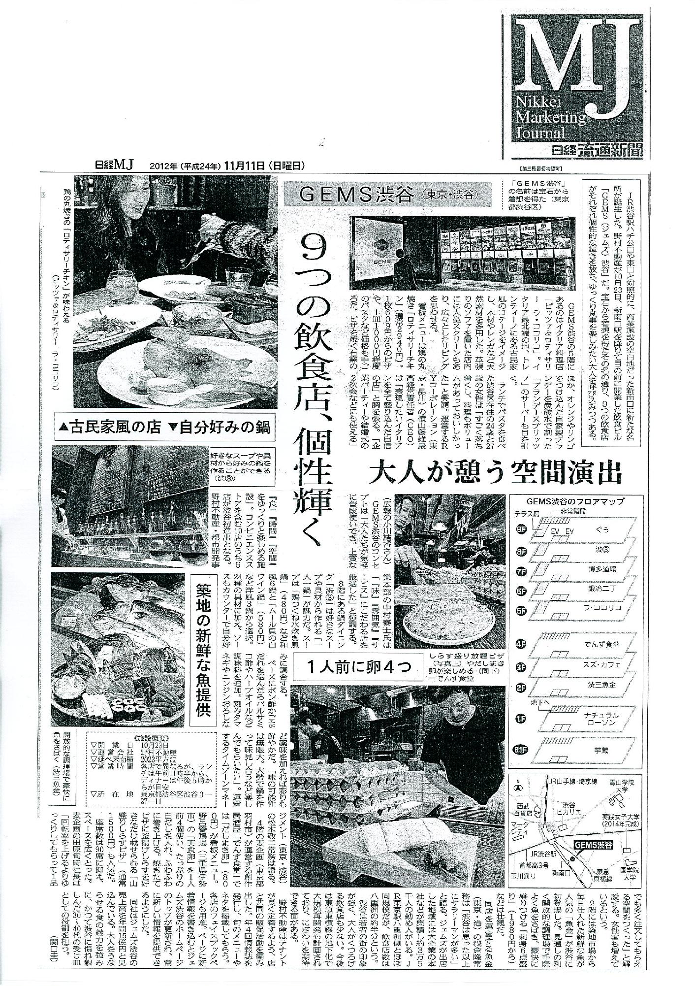 TOP Press Release 2012 2012年11月11日 11/11発刊の日経MJに PIZZA&ROTISSERIE LA COCORICOが掲載されました。 2012年11月11日(日) 一覧ページへ戻る