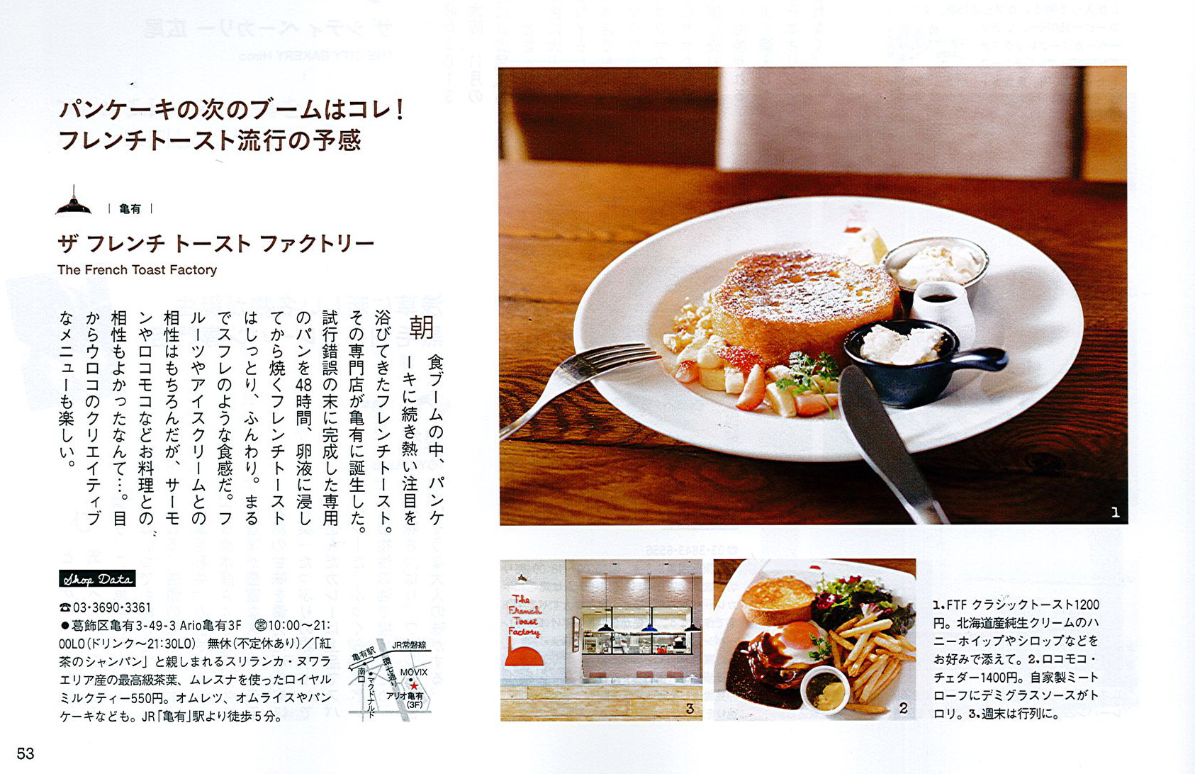 TOP Press Release 2014 2014年04月25日 Hanako No1063[4/24発売]にThe French Toast Factoryアリオ亀有店が紹介されました 2014年04月25日(金) 一覧ページへ戻る
