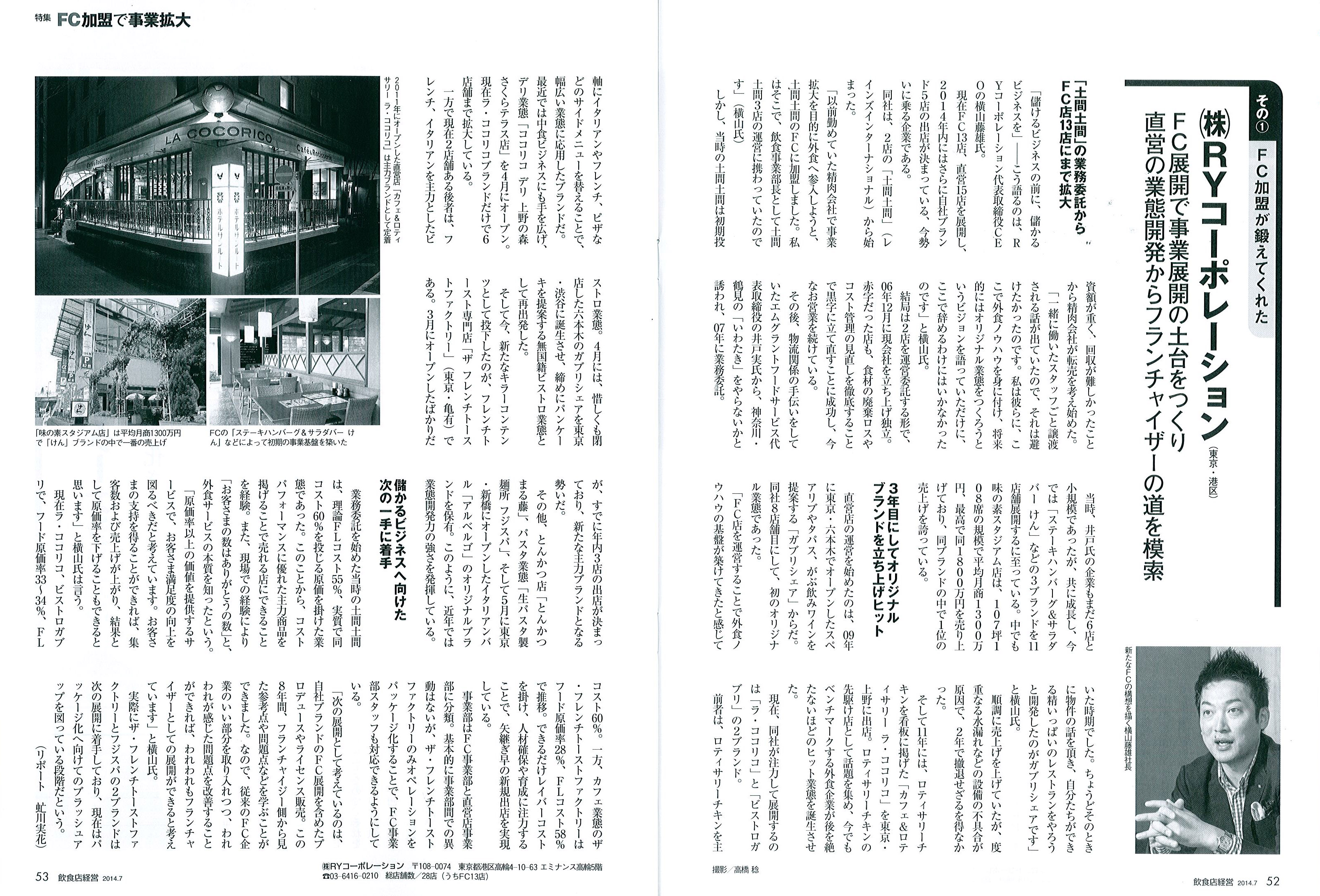 T飲食店経営[6/20発刊]に RYコーポレーションををご紹介いただきました。