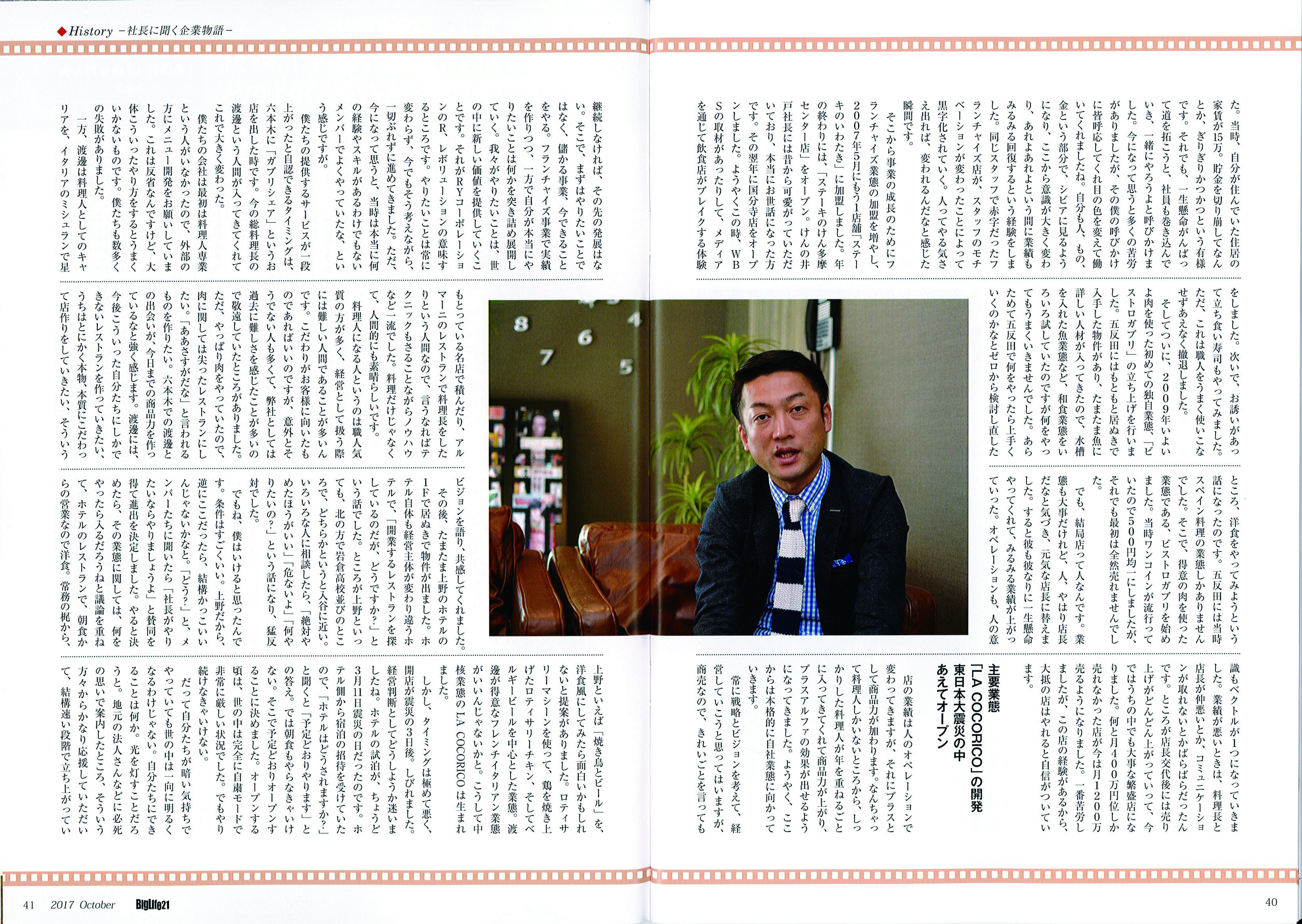 「Big Life 21」10月号に横山社長のインタビューが掲載されました。 2017年09月28日(木) 2017年10月2日発刊「Big Life 21」10月号に横山社長のインタビューが掲載されました。 詳しくはこちらから 一覧ページへ戻る