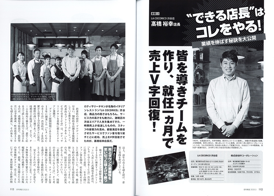 「近代食堂」3月号にLA COCORICO 渋谷店 髙橋店長のインタビューが掲載されました。 2020年3月10日(火) 「近代食堂」3月号にLA COCORICO 渋谷店 髙橋店長のインタビューが掲載されました。 一覧ページへ戻る