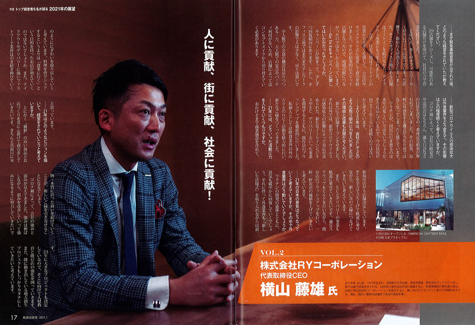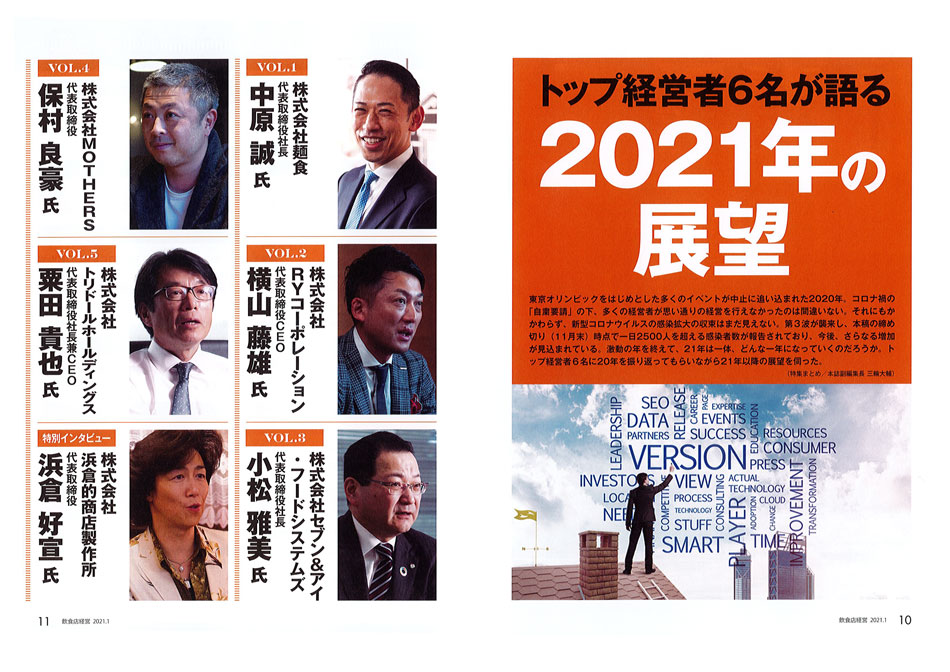 TOP Press Release 2020 2020年12月15日(火) 「飲食店経営」1月号に横山社長のインタビューが掲載されました。 2020年12月15日(火) 2021年1月号「飲食店経営」に横山社長のインタビューが掲載されました。 一覧ページへ戻る