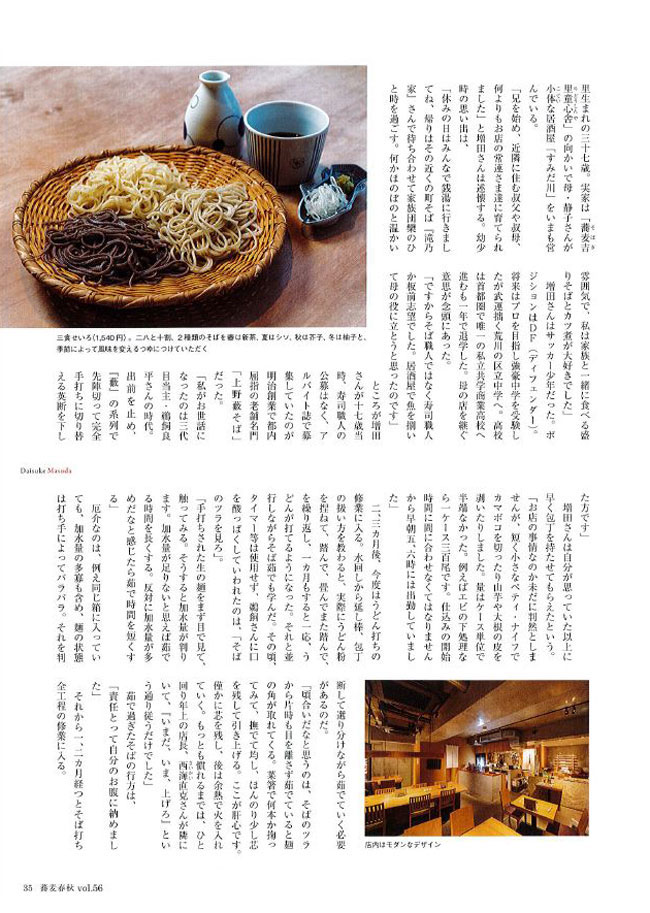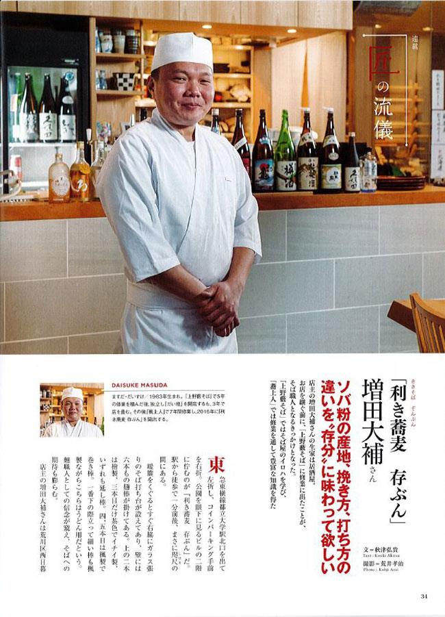「蕎麦春秋」Vol56に利き蕎麦 存ぶん 都立大学店 店主 増田さんのインタビューが掲載されました。 2020年12月25日(金) 「蕎麦春秋」Vol56に利き蕎麦 存ぶん 都立大学店 店主 増田さんのインタビューが掲載されました。 一覧ページへ戻る
