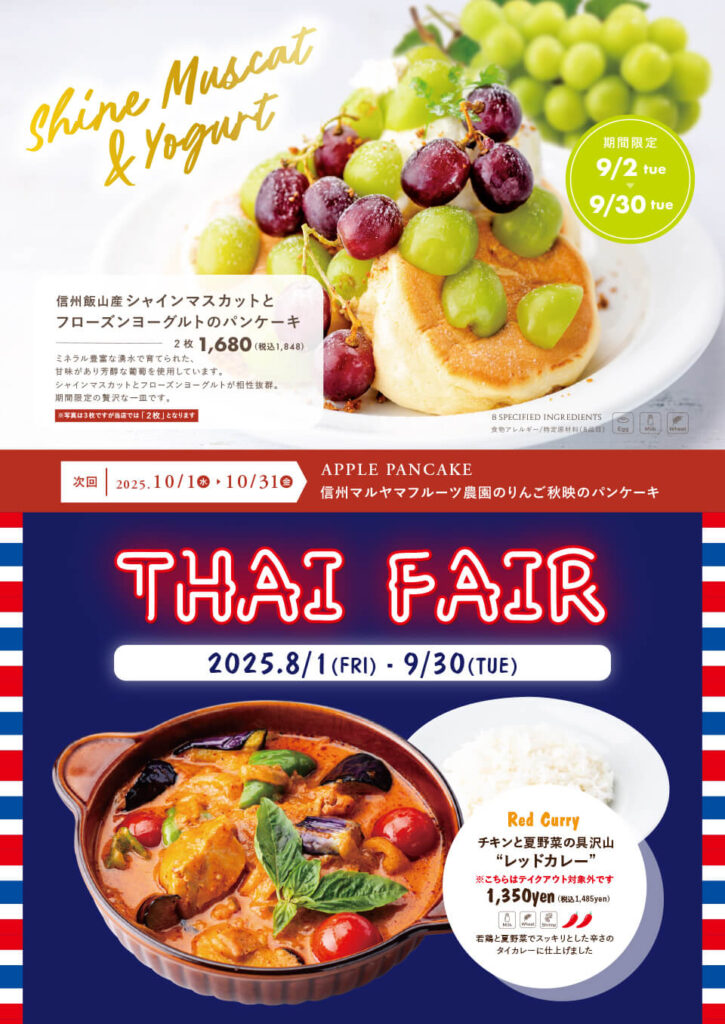 【9月2日(火)〜9月30日(火)まで】季節のパンケーキ「シャインマスカットパンケーキ」
