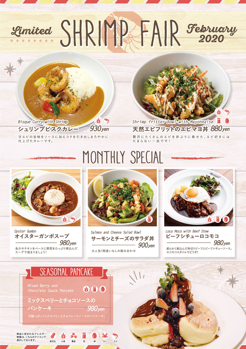 岸根公園店・みなとみらい店・たまプラーザ店は「SHRIMP&CRAB FAIR」、